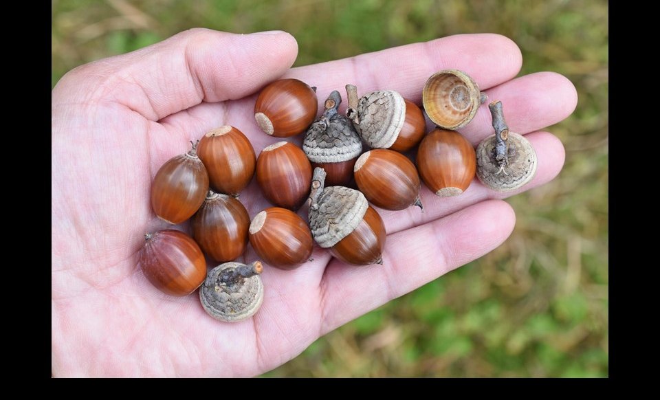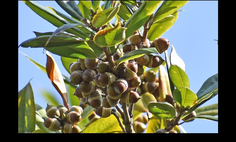 貴志御霊神社 [ 所在地:兵庫県三田市 ] には、40体余りのツクバネガシが植栽されています。京阪神には、ここよりも多くのツクバネガシが植栽されている場所はいくつもありますが、この神社ほどドングリの形態が多様なところは他にないかもしれません。いちどきに全ての個体が結実することはありませんが、年毎に落下したドングリを見比べてみると、その多様性に圧倒されます。